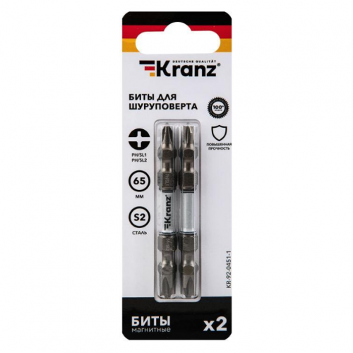 Бита двухсторонняя PH/SL1 * PH/SL2*65мм (2шт) Kranz ..