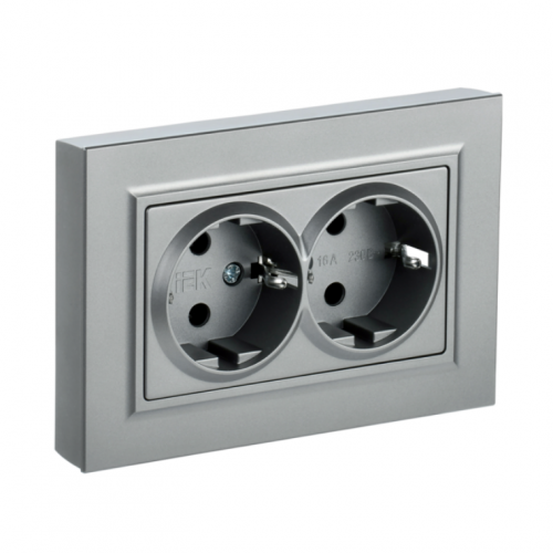 Розетка BRITE двойная с/з без защит.шторок 16А алюминий