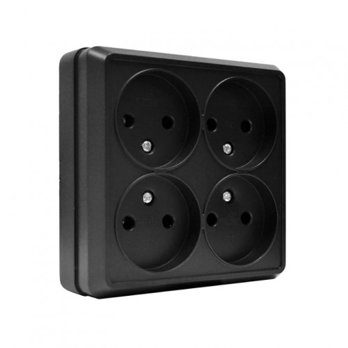 Розетка UNIVersal ОЛИМП 4-местная квадратная б/з черный ОП 16А 220В