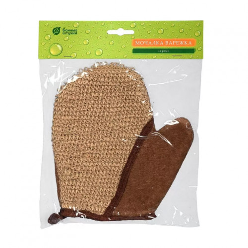 Мочалка из рами, варежка с хлопком 18*21см "Банные штучки"