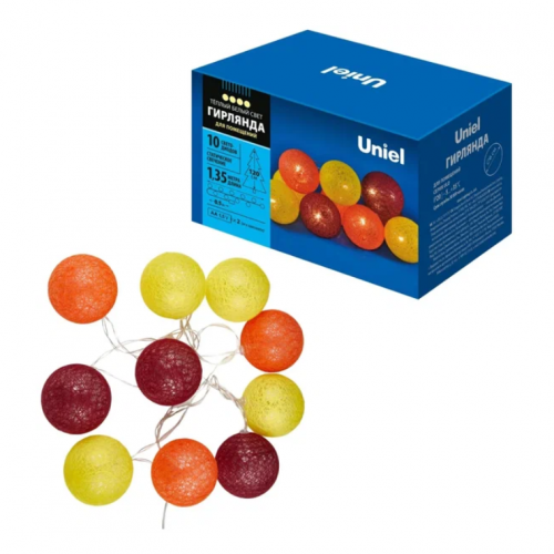 Гирлянда 10LED 1,35м "Шарики" теплый белый 2*AA Uniel ..