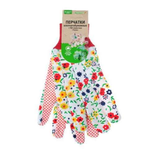 Перчатки садовые х/б с принтом цветы с ПВХ "Точка" G112-2