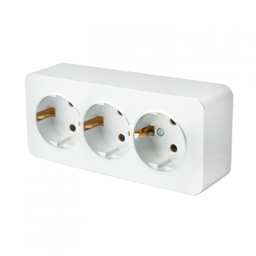 Розетка "София" трехместная с/з 250В 10А серия белый STEKKER