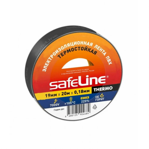Изолента ПВХ 19мм*20м Safeline черная термостойкая