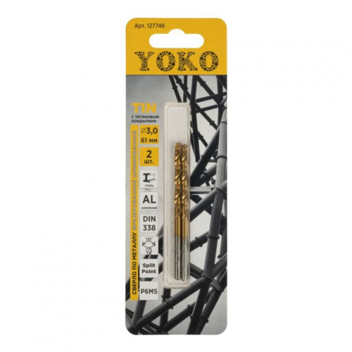 Сверло по металлу YOKO 3,0*61мм TIN 2шт