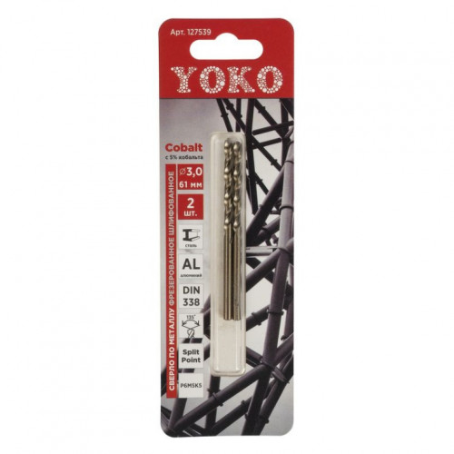 Сверло по металлу YOKO 3,0мм 61мм Cobalt 2шт