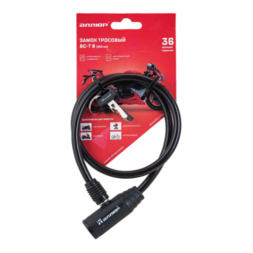 Замок велосипедный АЛЛЮР ВС-Т 8 650мм с тросом ..